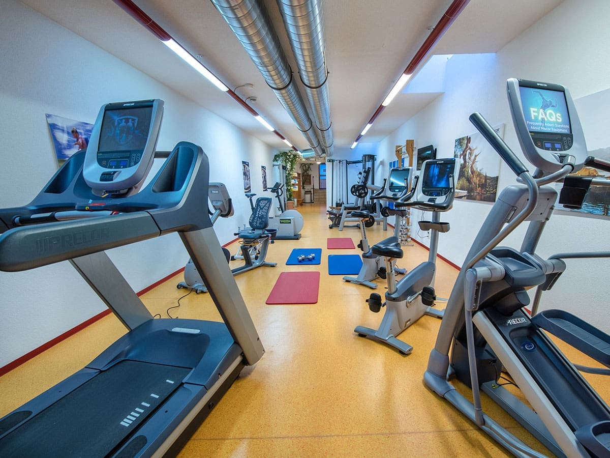 Tanken Sie Kraft und Ausdauer bei jedem Wetter im hoteleigenen Fitnessraum des 4 Sterne Hotels Zauchensee Zentral in der Salzburger Sportwelt. In unserem weitläufigen Fitnessraum finden Sie ideale Trainingsmöglichkeiten für gezieltes Kraft- und Ausdauertraining. Hochwertige Geräte der Firma Precor, einem führenden Fitnessgeräte-Hersteller, erleichtern Ihnen das intensive Workout. Ein integrierter Fernseher bei allen Cardio-Geräten sorgt für kurzweilige Trainingseinheiten. Die anschließende Erfrischung mit kaltem Wasser aus dem Trinkwasserbrunnen verstärkt die Lebensgeister. Handtücher liegen selbstverständlich für Sie zur freien Entnahme bereit. Vielleicht trainieren Sie auch mal zeitgleich mit dem Ski-Weltmeister Michael Walchhofer – nutzen Sie die Gelegenheit und erkundigen Sie sich dabei über wertvolle Fitnesstipps des Spitzensportlers.